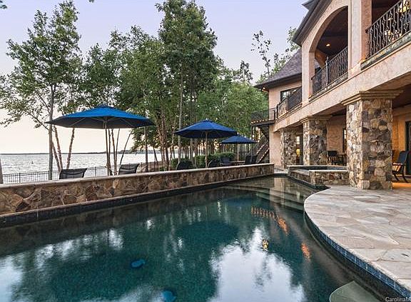 Extraordinary waterfront setting with Lake Norman sunset views & 180+/- feet of shoreline. Tom Stevenson luxury appointments include cast iron entry doors, Travertine, marble, warm hardwoods, custom cabinetry, extensive millwork & stone accents throughout. Exquisite kitchen with keeping room & spacious owner's suite has morning kitchen. Lake level rec room, wine cellar/tasting room & guest suite. Verandas extend to the resort pool/spa for fabulous entertaining & lakeside al fresco dining.