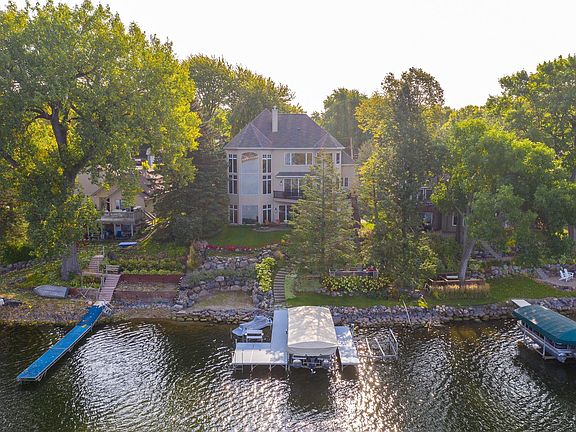 Turn key with European charm located on prime lakeshore of Lower Prior Lake. Enjoy sunsets from multiple outdoor spaces or through the gorgeous large windows with panoramic views. Property offers a gradual slope to the lake with amazing landscape, mature trees and 75 of lakefront. 5 Bedroom/4 Bathroom home features an open floor plan with hearth off the kitchen, floor to ceiling windows, dramatic tall ceilings, 3 fireplaces, abundance of custom cherry cabinetry, large deck and spacious master suite! Perfectly designed lower level with high-end luxury vinyl suitable for lake traffic, entertainment - bar, rail seating, spa bathroom with steam shower and walkout to the lake. Extra garage storage in lower garage for all the lake toys conveniently off the patio. Immaculate mechanical and mechanical room, home is well cared for.