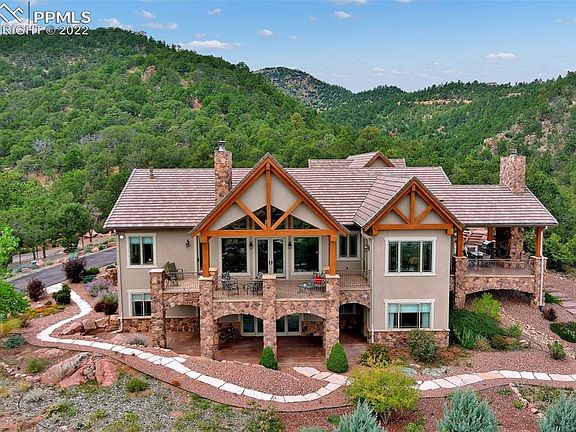 A quintessential Colorado mountain home with panoramic VIEWS, ACREAGE, and PRIVACY all within 20 minutes of Colorado Springs! This custom ranch style home is built with refined craftsmanship, luxury finishes, and is situated on a double lot totaling over 71 acres. It features 3 large bedroom suites, a craft room/second office, plus a large bonus room above the garage, 5 baths, 4-car garage w/workshop, numerous outdoor living areas, custom alder woodwork, doors, and cabinetry throughout, a gourmet kitchen w/high-end appliances (Wolf, Subzero), hickory floors on the main level, geothermal heating/cooling, and 5 fireplaces (2 wood, 3 gas.) The master retreat boasts spectacular views of the Sangre de Cristo Mountains, a sitting area, a large walk-in closet, and a spacious bath. The walk-out lower level has 10-foot ceilings, a wine bar, an exercise room, and a 6'x12' walk-in, fire-rated vault. The paved, circular driveway provides easy access w/multiple additional parking areas that are also suitable for future outbuildings/garages/barns. This peaceful retreat is located within the private, gated, community of the Highlands at Turkey Canon Ranch. HOA dues cover all road maintenance to include snow removal and gate operations, architectural control, and trash removal. Outdoor sportsmen, wildlife enthusiasts, and nature buffs will appreciate the neighborhood access to 30,000+ acres of BLM land and Aiken Canyon Preserve. The two, combined parcels could also be easily split back to the original subdivision plan, offering a second buildable parcel higher on the mountain behind this home. Make your mountain living dream a reality with this gorgeous home and property!