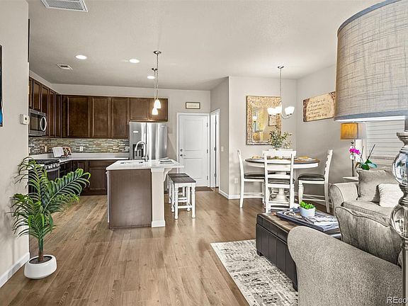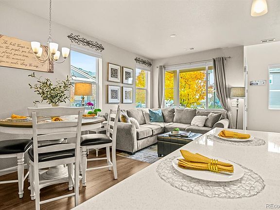 Welcome to this beautifully move-in-ready 3-bedroom, 2.5-bathroom townhome in West Arvada. This corner unit faces a serene park with a playground and lush green space, offering peaceful views and a perfect spot for outdoor relaxation. Enjoy the convenience of walking to nearby restaurants and grocery stores, all while living on the edge of the Colorado foothills—ideal for quick mountain getaways or hitting the slopes. Inside, the contemporary open floor plan features a stylish modern kitchen with stainless steel appliances, a gas stove, a large pantry, and ample counter space. The adjoining dining area and updated half bathroom make hosting effortless, while the spacious living room, complete with a modern fireplace, is bathed in natural light, creating a welcoming ambiance. The primary suite is a tranquil retreat, offering a walk-in closet and a luxurious en-suite bath with dual vanities and a walk-in shower. Two additional bedrooms and a full bathroom provide versatility for family, guests, or a home office. The spacious laundry room with shelving is conveniently located upstairs. An attached 2-car garage adds convenience, while the covered porch is perfect for enjoying Colorado’s stunning seasons. This home is part of a quiet, well-maintained neighborhood with a low HOA (under $60/month, including trash and water), community pool, and proximity to a golf course. With only one owner, pet-free, and meticulous upkeep, this property is truly move-in ready. Located near coveted schools, parks, and community amenities, this amazing townhome blends comfort, style, and practicality in one of Arvada’s most sought-after areas. Don’t miss your chance to call it home before the new year!