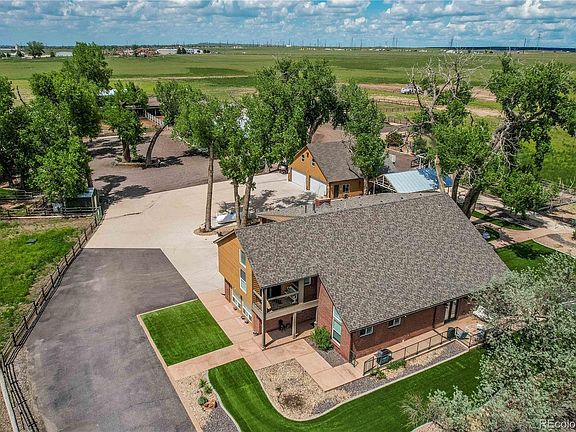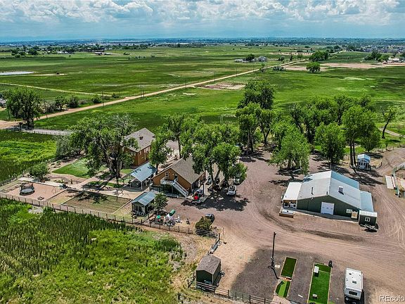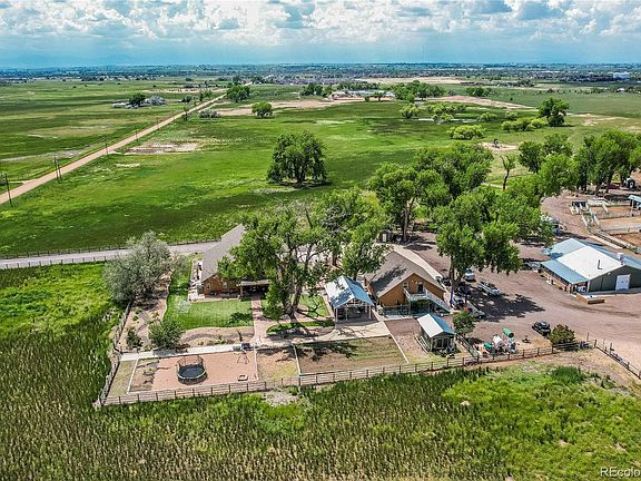 ALL 51+ ACRES INCLUDED in price adjustment! This is not just an amazing property it's a lifestyle! Just 33 minutes from Broncos Stadium this property includes endless possibilities including multi-generational living with several revenue stream options. Enjoy Equestrian lifestyle with an unbelievable event space, a currently operating oil well, livestock, sport activities, R.V. sites, and whatever you can imagine is on this 51.26 acre property. Additionally, you find fuel pumps, gardens that irrigate with weed barrier, a playground, and a multi use turf area. With three primary/master suites two on main floor both with walk out patio doors, and a third upstairs with a beautiful deck all including an en suite! This custom home is adorned with the finest of finishes from the tongue and groove ceilings, shiplap walls, and vaulted ceilings down to the real wood floors. The kitchen is an absolute show stopper complete with commercial refrigerator, downdraft range, and an unforgettable island attached to a 10x10 size pantry. This beautiful home has room for the whole family with an additional 3 bedrooms and 3 baths. Home boast scenic, unobstructed mountain views from almost all the rooms! The 5 car garage is fully loaded with lift and everything you could ever want in a garage. The barn next to the garage also has its own kitchen and bathroom with lots of space to work, play, or host. Lastly, in between the home and 5 car garage is an amazing water feature, hot tub and a large rotisserie BBQ. With so many stunning features, this is a property you have to see to believe!