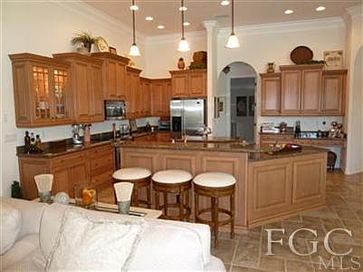 Beautiful details are found in this 5 Bedroom pool home w/ 3-car garage. Inside you find a formal dining & living room, an open gourmet kitchen with real wood cabinets, an island, built-in desk, breakfast bar & eating nook, complete with granite & stainless steel appliances. The adjoining family room features 8ft sliding glass doors that open to the amazing lanai. A large master suite includes his & her walk-in closets, a master bath with a jetted tub, walk-in shower & dual vanities. The den/office has a real wood floor & is accented with chair rail. The fifth bedroom can be used as guest suite with access to the lanai. Additional features: volume ceilings, crown molding, niches, tile, plantation shutters, dual A/C Zones, dual water heaters, surround sound & more. Entertain with ease on the lanai with multiple sitting areas, a fireplace & wade into your private pool while enjoying the lake view. Equity membership of $81,000 due at closing, No CDD Fee... Brokered And Advertised By: McWilliams Buckley & Associate Listing Agent: Thomas A Buckley IV PA