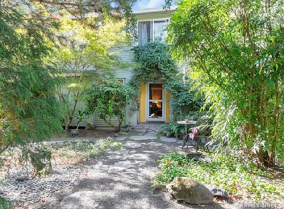 Unique home in desirable Oak Hills. Private backyard, secluded sitting areas, organic gardens, water reclamation features and playhouse. Major remodel in '95, new roof. Wood, slate, cork and tile floors. Additional outside entrance to 2nd floor's 4 bedrooms, 1.5 baths, 2nd laundry, great hall, loft, living room, kitchen, meditation nook, unfinished utility rm. Cul de sac location, multi-generational, feng-shui, natural landscaping.