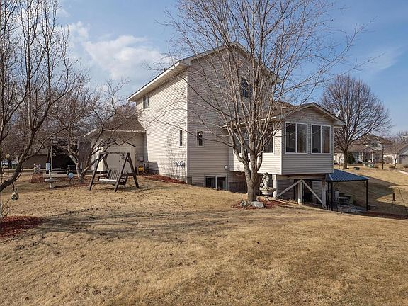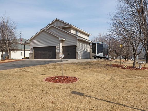 Welcome to 15513 Bluebird St. NW, Andover – a beautifully maintained modified two-story home featuring an open floor plan and thoughtful updates throughout. As you step inside, you’re greeted by a spacious foyer leading to a large mudroom that seamlessly connects the front entrance and garage access, making daily routines effortless. The main floor boasts vaulted ceilings, hardwood floors, and a cozy corner fireplace, perfect for gathering with loved ones. The kitchen is a chef's delight with stainless steel appliances, granite countertops, and a center island. Adjacent to the dining area, the 3-season sunroom offers a relaxing space to unwind, while the main floor bath includes a convenient walk-in shower. Laundry is also located on this level, complete with brand new washer and dryer. Upstairs, you’ll find three generously sized bedrooms, including a primary suite with a large walk-in closet. The full bathroom has been beautifully updated with a dual vanity, providing ample space for busy mornings. The walkout lower level is an entertainer's dream with another fireplace, featuring a bedroom and access to the serene backyard. Step outside to enjoy the patio with a charming gazebo, which stays with the home, or relax by the small fountain pond nestled in the garden. The yard is a gardener’s paradise, adorned with perennial gardens filled with Hostas and Daylilies. An unfinished space in the basement includes a craft area, offering potential for customization. Practical updates include a new hot water heater and garage doors replaced just two years ago. The 3-car garage is insulated and sheetrocked, featuring a loft for additional storage. A concrete pad next to the garage and another behind it provide extra space for parking. With a covered front porch and inviting curb appeal, this home is ready to welcome its new owners. Don’t miss the opportunity to make this exceptional property yours!