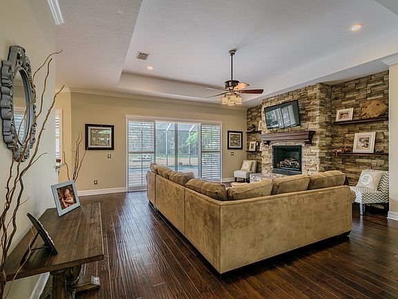 Situated on an oversized lot and a quiet cul de sac in Mill Creek VII, this meticulously kept move in ready home features many stunning upgrades that are sure to delight! Walk in to an open floorplan and enjoy the rustic appearance of a cozy gas fireplace and mantel within the spacious living room. The floorpan is outfitted with high ceilings, crown molding, upgraded with wood and tile flooring and beautiful plantation shutters throughout. A BRAND NEW 15 seer AIR CONDITIONER was installed in September, 2016! This beautiful home consists of 3 generous sized bedrooms, 2 and a half bathrooms and a large office or den. Master suite has a large walk in closet and master bath features a relaxing tub, shower and his/her sinks. The stunning kitchen offers real wood cherry cabinets, granite countertops and stainless steel appliances. The outdoor space features an excellent sized screened in pool with a large, brick paver deck and interior foliage. The patio ceiling has been upgraded to include tongue and groove wood along with new ceiling fans. Host your guests or enjoy grilling your nightly dinner on the outdoor kitchen which features a grill, mini fridge and sink! Extend your gatherings to the brick paved outdoor fire pit. Priced to sell and in A+ school districts!