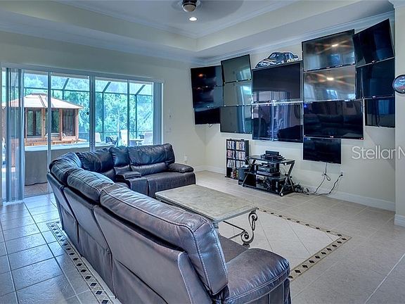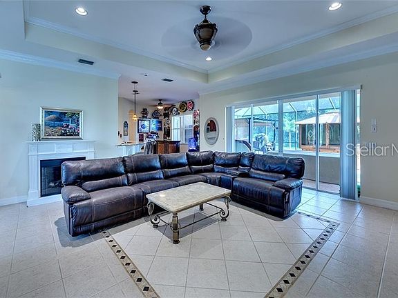 - Interior Features: Ceiling Fans(s), High Ceiling(s), Master Bedroom Downstairs, Split Bedroom, Crown Molding, Walk-In Closet(s), Window Treatments, Open Floorplan, Solid Wood Cabinets, Eating Space In Kitchen, Kitchen/Family Room Combo, Stone Counters, Tray Ceiling(s), Sauna, Thermostat