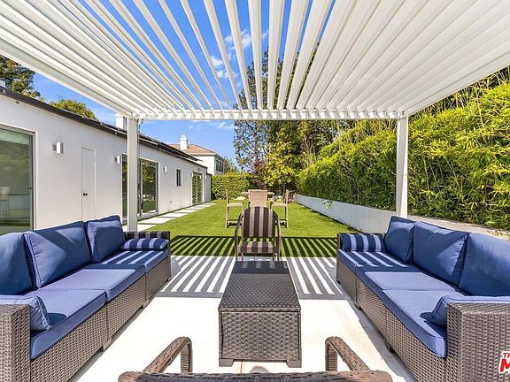 Fantastic, inviting, warm, contemporary 5 bedroom, plus a large room upstairs and 5 bathroom home situated in a pristine, exclusive cul-de-sac in the highly sought after neighborhood of Bel Air Park with 24 hour security patrol. All rooms and bedrooms are on the first floor except one large room on the second floor with a cozy balcony. This immaculate beauty features a gorgeous living room, formal dining room, cozy family room and a gourmet eat-in kitchen with Caesar stone countertops, top-of-the-line stainless-steel appliances and sleek custom cabinetry throughout. The open floor plan and entertainment space continues outside in the backyard with a secluded grassy yard, patio to lounge and dine in and a large size pool and spa. No additions were spared, including a sizable wine room with adjustable temperature, plenty of skylights and solar panels. Can be leased furnished, semi Furnished or unfurnished. Don't miss the opportunity to experience modern living at its finest.