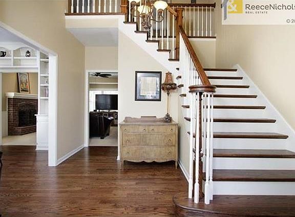 An outdoor oasis awaits you in this 2-story home on one of the largest cul-de-sac lots in OP! This home backs to greenspace and features an 800+ sqft deck and fenced yard. Updated kitchen features granite, walk-in pantry and gas cooktop. Mstr. bedroom complete with fireplace and 11x16 walk-in closet. Beautiful hardwood floors throughout and large windows bringing the outdoors in. Just minutes from Prairie Fire, Sprint, and Town Center. All measurements approximate.