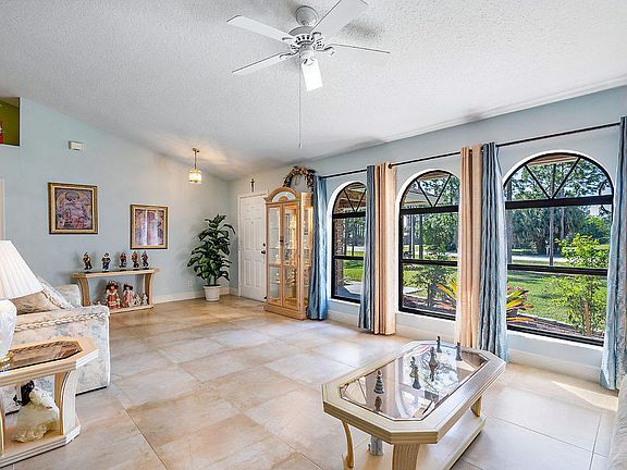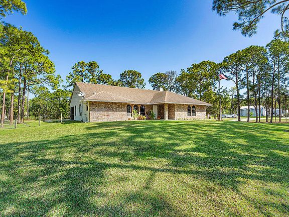 Stunning home on fenced in corner canal lot 1.54 acres with large gate at the rear. Meticulously cared for with many great features such as tile and wood laminate flooring, vaulted ceilings and a floor to ceiling Beautiful stone fireplace. The kitchen features 13' long breakfast bar that opens to the family room, SS appliances, under counter lighting and wood cabinetry with plenty of storage. Split floor plan. Master bedroom has walk-in closet. Master bath has dual vanity and large shower enclosure. Second and Third bedrooms both have large walk-in closets. French doors that lead from the dining area to the spacious screen enclosed patio area and the outside BBQ area with a gorgeous custom made wood Pergola. Must see to appreciate the beauty, peace and tranquility.
