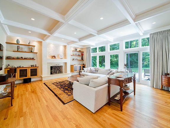 - Ceiling Fan(s), Breakfast Bar, Kitchen Island, Double Vanity, Sound System, Walk-In Closet(s), High Ceilings, Great Room, Beamed Ceilings, Stone Counters, Eat-in Kitchen, Formal Dining Room, Crown Molding, Bookcases, 1st Bdrm En Suite, Stand Up Shower, Custom Cabinetry, Built-in Desk