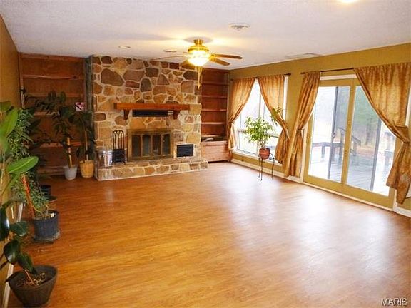Beautiful Views! Huge old oak trees surround the custom 3-4 BR home on 5 acres m/l close to town. Inspiring unique design & setting is very serene. Tiled entry, baths and kitchen. Beautiful solarium for growing plants or just reading your favorite book. Kitchen w/large pantry & loads of cabinets. Area for breakfast table, plus formal dining w 1/2 bath adjacent. Large living room w/native stone fireplace is lined w/windows & glass doors to the private deck. Family room & extra room could be that 4th bedroom. Washer/dryer connections on both levels for your convenience. Upstairs large Master Suite has walk-in closet & private bath. All bedrooms have vaulted ceilings and skylights. Large windows grace the entire home to bring in the natural light & views of the countryside. 24 x 18 barn w/electric, insulation and concrete floor. Pine trees, flowers & wildlife abound. Laminate floors -Luxury Vinyl Glenwood Planks. Anderson windows & owned water softener. Fenced back yard.