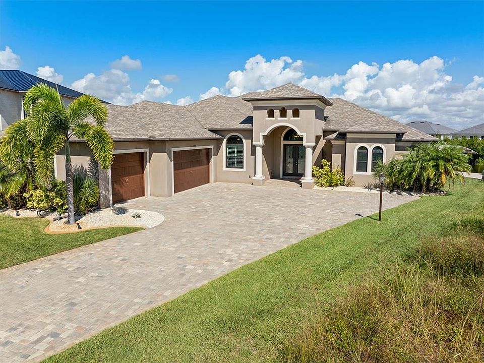WATERFRONT LUXURY LIVING – “LUKE BROTHERS” CUSTOM MINI ESTATE HOME IN SOUTH GULF COVE! This spectacular 3-bedroom, 3.5-bath, 3-car garage waterfront pool home offers the ultimate blend of luxury, comfort, and Florida coastal charm. Sitting proudly on almost a half-acre sailboat water tip lot with 149 feet of concrete seawall and mesmerizing views of intersecting canals! This property has one of the closest locations to the lock with immediate access to the river! From your covered composite dock with water and electric, a 10,000 LB boat lift, and a lower deck perfect for kayak access, you’ll have quick access to Charlotte Harbor and the Gulf of Mexico. Step inside and feel the elegance immediately. With over 3,200 sq ft of meticulously designed space, this home features two master suites, each with its own private ensuite bath and lanai access. Volume ceilings soar high above with lighted double tray details in the great room, dining room, and both master suites—adding brilliance to every gathering. The porcelain plank tile flooring, plantation shutters, and crown molding create a polished and timeless appeal throughout. The grand center island kitchen is a chef’s dream, complete with rich wood cabinetry, under-cabinet lighting, and Cambria quartz countertops that flow seamlessly through the entire home. Enjoy a built-in pantry with pull-out drawers, slow-close cabinets, and a lighted quartz bar that makes entertaining effortless. Every glance from the kitchen, dining area, and great room leads your eyes to the sparkling pool and wide canal views. Each bedroom is generously sized with walk-in closets, lighted tray ceilings, and spa-inspired bathrooms featuring quartz counters, dual sinks, and tiled walk-in showers with glass enclosures. The oversized three-car garage offers epoxy flooring, a built-in workshop, and a central vacuum system. The brick paver driveway and double leaded-glass entry doors set an impressive tone, while the paver pool deck, under-fascia lighting, and lighted dock path make evenings magical. With sprayed attic insulation, your home stays cool and efficient year-round. Located in the highly desirable South Gulf Cove waterfront community, this property offers convenient access to shopping, dining, Town Center Mall, Boca Grande beaches, and the beautiful Gulf waters. Whether boating, fishing, or relaxing by the pool and spa, every day feels like paradise in this high-quality, custom-built home. Schedule your private showing today and experience waterfront luxury at its finest!