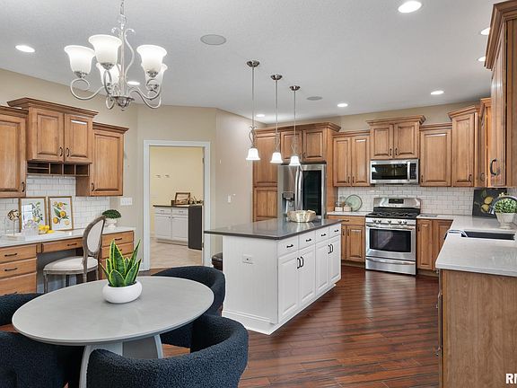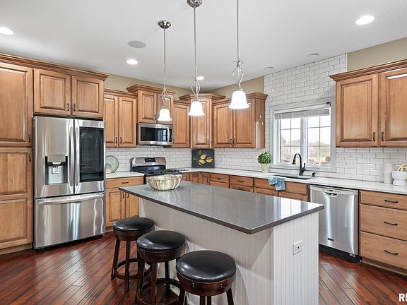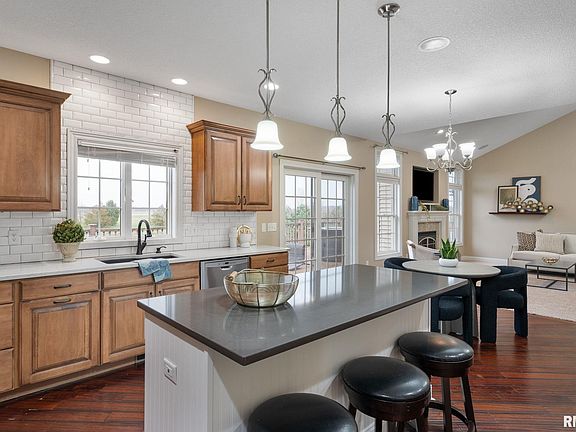 A Harmony Hills property like this is rare to find! 4 bedroom, 3-bathroom ranch with a 6-car garage! Over 3,800 square feet on a .84 acre lot with lake views! Open concept main level with vaulted great room with gas fireplace! Spacious kitchen with stainless steel appliances, island, breakfast bar, and dining space. Main level office & laundry room. HUGE composite deck off the back! Spacious primary suite with tray ceiling, walk in closet, and large bathroom with tile shower, tub, and double sinks. The finished walk out basement has a huge rec room area, theatre room & 4th bedroom. Slider out of the basement leads to a patio & spacious just under an acre lot! Call for your private showing!