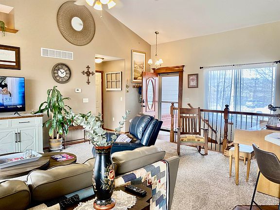Better than new the specials are paid off. This beautiful home has incredible views of the lake and the Kansas skies. The home is a split bedroom floor plan with large open rooms. Gourmet Kitchen, Separate laundry room, and the Master bedroom suite has access to the back deck. A great wet bar in the basement makes the home perfect for entertaining and all of the art deco niches add to the character of this home.