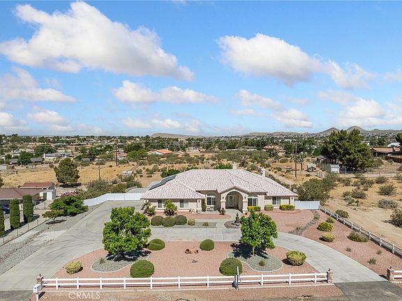 !!!DRAMATIC PRICE REDUCTION!!! Just WOW! This is the one that everyone drives by & slows down to REALLY check it out! So much curb appeal! Check out this estate quality home, estate sized lot. Close to Apple Valley Country Club & golf course. Checks all of the boxes! Beautiful custom Deserada home. Immaculate inside & out. 2 SETS OF SOLAR PANELS-ONE IS PAID OFF, ONE IS LEASED. The floorplan allows for ALL options-plenty of BR's, very large bonus room currently used as office area but could be used as theater room, game room, etc. Formal & informal living & dining areas, Beautifully appointed kitchen with all of the cabinet space you could wish for, including a large pantry. Kitchen opens onto family room with fireplace so the entertainment options here are limitless. Large dining nook adjacent to kitchen as well. All BR's are good sized. Split floorplan that includes BR & full BA at one end of house-ideal for guests, inlaws, etc. Oversized finished garage. Master BR is huge with fireplace & large BA with garden tub, oversized vanity area, large walk in closet. Laundry room has extra storage-in fact this home has so much storage through out-you will NEVER run out of space. New carpet in family room & master BR. Some other carpeted areas are only a few years old. Vaulted ceilings further increase the feeling of spaciousness. The large lot is fenced & x-fenced with white rail fence & stone pillars at front. Meticulously done colored rock yard areas, concrete curbing, trees & shrubs. Circle drive & other extensive exterior concrete work. Large fountain near entry gives a nice added aesthetic appeal. Check out the large wrap around alumawood patio at the back-several sections that go on & on! There is enough land here to add an ADU, inground pool, workshop, sports court-or all of the above.