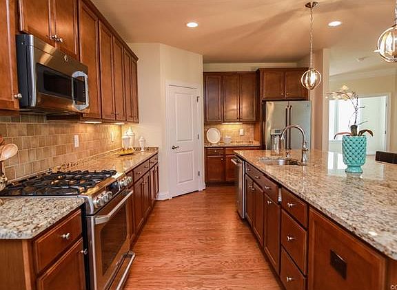 Gorgeous Upgraded MOVE IN READY beauty is priced to sell, zoned for Cosby & ready for your family today! Still under Builder's Warranty!! Enjoy 5 bedrooms & FIRST FLOOR In-Law Suite, OPEN FLOOR PLAN design, with lots of upgrades including all newer appliances! Enter the 2 story Foyer from the Front Country Porch to beautiful hardwood floors flowing into a Formal Dining Room and Office/Playroom with French Doors. The Chef's Kitchen offers gas cooking, granite counter tops, stainless steel appliances, recessed, under cabinet & pendant lighting accenting an over-sized breakfast bar Island adjacent to the Breakfast Nook and large Family Room with Fireplace & Surround Sound. Walk out to the large Screened Porch overlooking gorgeous wooded views and a paver Patio. Vented grill hood and gas hook up. The 2nd Floor opens to a large Loft space for additional family entertainment. The Master bedroom offers recessed lighting,tray, fan, carpet, a luxury shower suite with dual vanity & a walk-in closet opening to the 2nd Floor hall Laundry Room. Find 3 additional bedrooms & a dual vanity bath. The Landing at Swift Creek has its own private dock & waterfront picnic shelter & fire-pit.