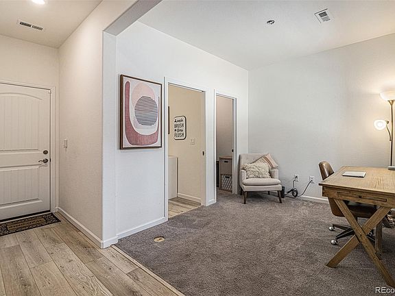 This is a beautiful and newly built townhome. First floor includes separate office and adjacent bathroom. The kitchen and living/dining area is open floor plan with a large walk in pantry and electric fireplace. All appliances are included. Stainless steel appliances, gas range, granite countertops, ample storage with plenty of counter space for additional seating. This beautiful home has a deck with views of the Castle Rock, and is walking distance from a park, dog park, fields and walking trails. Laundry is conveniently located next to all three bedrooms. Close to downtown shops, restaurants, boutiques, golf course, city pool, fairgrounds, this is an outstanding location for a terrific home that truly lives large.