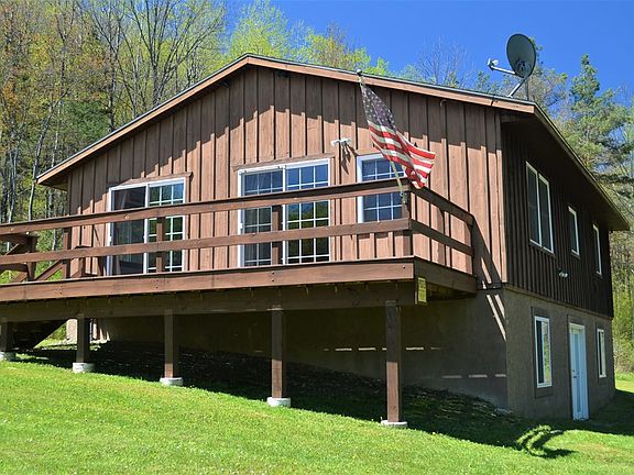 Peaceful, Restful Seclusion on 52.85 acres plus you are surrounded by over 500 + acres of state property. Under ground utilities and walking trails throughout the woods. Home has glowing pine plank floors throughout. Walkout lower level offers added square footage to expand this home any way you may want to. Lower level is already plumbed for a bathroom and utility/laundry room. Fantastic outdoor deck with double sliding doors from the kitchen and living room. This house could be a great second home with the serenity, or your full time home with an easy commute to Watkins Glen or Painted Post.