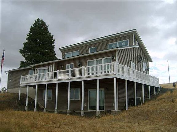 VIEWS of the Palouse River, Golf Course, McDonald Park, and City of Colfax. 4bd, 2ba home situated on approx. 16 acres. Built in 2001. Location is approx. 2 miles outside Colfax. Natural landscape and open deck. Attached 2 car garage plus two shops with garage doors for extra storage. Private location, but close to town. Spacious family room in daylight basement. Kitchen, living room and eating area all have windows that overlook the grand views. You may not find a better view!! Call Carmen Bruya for a showing 509-553-9494.