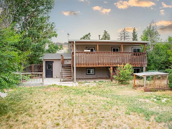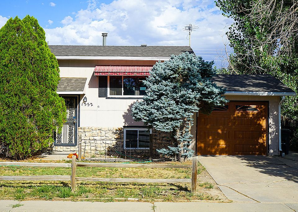 Adorable Rowhouse in the heart of Strasburg! This area is growing extremely fast. Great investment property, rental or starter home. Walking distance to restaurants, shopping, schools and park. 40 minutes to downtown Denver. The home was updated in 2016 with air conditioning and roof. Enter the front stoop to access main or basement level. Main level has a bright living space with tall windows adjacent to the updated kitchen. Kitchen highlights stainless appliances, tile backsplash, newer cabinets, eat-in space and backyard access. Backyard is spacious with many mature trees for privacy. Backyard area has a designated garden space, carport and shed. Shed does needs some repair. The best feature is the huge back covered deck. The 1-car garage has backyard access. The side gate does not open. The basement has a large bonus space with a vintage wet bar, mini fridge and icebox. The primary bedroom brings in lots of light, large closet and dresser cubby. This could also be used for another closet. The on-suite 3/4 bath has been semi-updated with grand tile shower. The other two bedrooms are on the main level and hallway linen closet. The main level also has a full bath. This property has an ample storage area under the stairs. Secure your investment in Strasburg today!