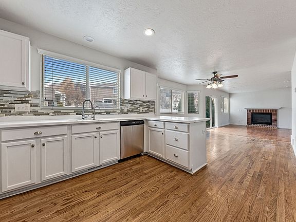 Great Family living in a wonderful neighborhood in the foothills of Farmington Open kitchen dining family room with a cozy fireplace! Large master suite with soaking tub and double sinks. Nice patio with shaded fully fenced back yard. large common area with park, play area, basketball, and pavilion near the home, New roof, water heater, air conditioner, oven and dishwasher.