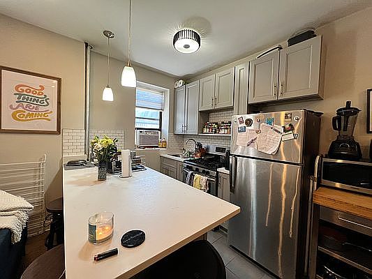 Washer/Dryer in apartment! Rent stabilized apt! Newly renovated, gorgeous, quiet, clean, very bright & sunny 1 bedroom apartment. Open kitchen with bar, includes new appliances including refrigerator, range, washer & dryer, white granite counter tops, back-splash and 42" Custom made gray cabinets with self closing doors & a pantry. The bedroom has windows with natural sun light, fit queen size beds, desk & dresser & closets with 8 foot solid core closet doors and shelving. Living room & common area includes lots of windows natural sun light, large closet & storage, floor and chair rail moldings, recessed lighting. Bathroom includes 20" deep acrylic tubs, 24" solid wood vanity & high grade fixtures including porcelain tiles. Located on the 1st floor of a walkup apartment building is located on a prime, tree lined quiet block in the heart of Crown Heights near all shopping, boutique stores, restaurants, schools, a short walk to the Brooklyn Botanical Garden, the Brooklyn Museum and Prospect Park and the # 3 & 4 train lines placing you within 20 minutes of downtown Manhattan. * CCTV Video cameras & access control system for both the front & vestibule doors * Recessed lighting * common area large closet * Heat, hot water & cooking gas included * Guarantors are accepted nationwide! * Rhino accepted 1552 President Street, Apt. #4A is available AUGUST 1 directly from the owner for $2,295 NO FEE #brooklyn #nofee #apartments In person showing by appointment: Mondays, Tuesdays & Thursdays 5 - 6 pm & Saturdays 11:30 am - 12:30 pm Tenant request that you please ware mask during showing. Please contact us for more info on this and other no fee apartment available directly from us the owner. Follow us twitter/ownernofee All square foot #'s are estimate