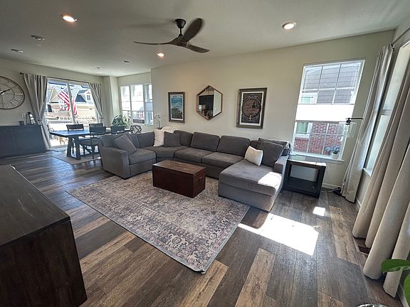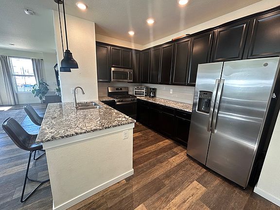 WEST FACING WITH MOUNTAIN VIEWS!! 3 br 3 1/2 ba Pristine Colonial Lucent paired home in newly-built Erie Compass neighborhood available for rent. This 2021 property is built on a premium corner and west-facing lot (across the street from the park) with a 2-car garage (including wall storage), finished basement (includes full bath), cozy upstairs loft, and newly turfed side yard. The main living area offers a great gathering space, large kitchen with granite countertops, GE appliances, and a pantry for storage. Large windows offer excellent natural light and amazing mountain views. Main floor laundry room with newly installed doggie door that leads to the back deck and side yard. The large owner's suite features a spacious bedroom, walk-in closet and a ensuite bathroom. Upstairs is completed with an additional bedroom, full bath and large loft area. The newly finished basement offers a large recreation area/second living area, as well as a full bathroom and additional bedroom. Solar panels are owned for additional electrical savings.