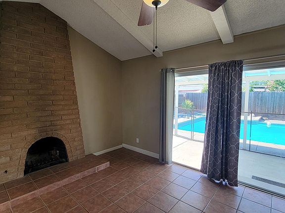 A 3-bedroom, 2-bathroom single-family home nestled in a peaceful and quiet neighborhood in Clovis, CA located near major shopping centers. As you enter, you're greeted by an inviting living room adorned with natural light from large windows. Next to the living room is a family room with a cozy fireplace, perfect for relaxing evenings with family and friends. The kitchen boasts tile countertops, appliances, and ample cabinet space, making meal preparation a joy. A dining area adjacent to the kitchen offers views of the front porch, creating an ideal setting for enjoying meals together. The master suite is a sanctuary of comfort, complete with a walk-in closet and a bathroom. Two additional bedrooms provide plenty of space for guests, children, or a home office. Step outside to discover your own sparkling pool and a cemented patio area ideal for outdoor dining and entertaining. Whether you're hosting a barbecue or simply lounging poolside, this backyard retreat promises endless relaxation and enjoyment. Additional highlights of this home include a one-car garage, a water softener system, in-garage laundry facilities, and central air conditioning for year-round comfort. Located in a family-friendly neighborhood and close to almost everything you would need. -10 minutes away from California State University of Fresno -10 minutes away from HWY 168 -2 minutes away from Sierra Vista Cinema 16 (movie theater) -5 minutes away from COSTCO -10 minutes away from Fresno Yosemite International Airport -10 minutes away from the Save Mart Center (Event center) Don't miss out on the opportunity to make this home yours! Schedule a showing today. Lease Term: 1 year Security Deposit: $2,300.00 Pets: Not allowed Appliances: Refrigerator, microwave, oven, washer, and dryer included Utilities: Tenants responsible for PG&E, water, sewer, and trash Insurance: Renters insurance required before moving in Laundry: In-Unit Parking: Attached Garage, 1 space Front yard (Lawn and shrubs will be maintained by landscaper) will and back yard managed by Tenant Swimming pool will be managed by a service company (Tenants are required to keep the water level up and occasionally brush the pool walls Water Softener will be maintained by Tenant Applications are submitted through Zillow. Property is occupied. Please do not disturb tenants.