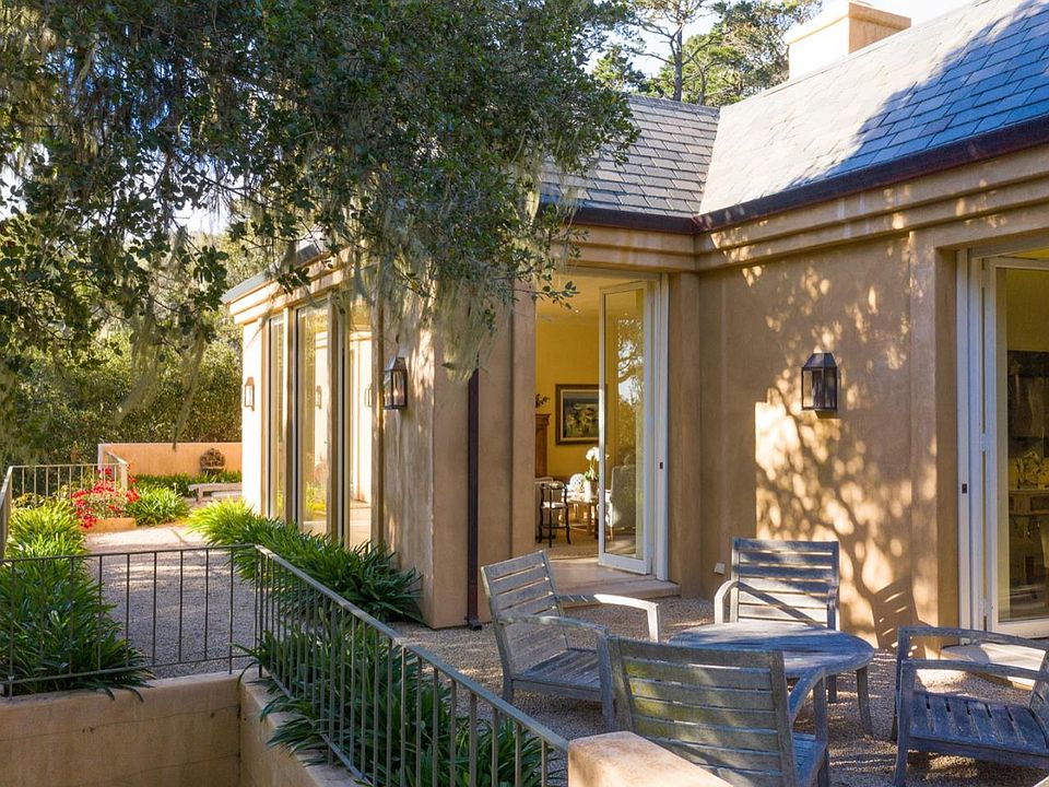 Tucked away in a private and spectacular park like setting this central Pebble Beach estate will delight the most discerning tastes. The home conveys the essence of unpretentious elegance and simplicity of design that is both aesthetic and calming. This chic, modern classic design boasts beautiful ocean views in the garden setting with water features and walls of glass which pull nature in. Relax on the back patio with a roaring fire or enjoy a morning coffee in the sunny protected courtyard, this home lives the way you do. Single level, three bedrooms, three full and one-half baths, including separate but attached guest quarters with its own entrance. Close to the Lodge, golf, tennis, spa, and restaurants - this is a perfect Pebble Beach spot.