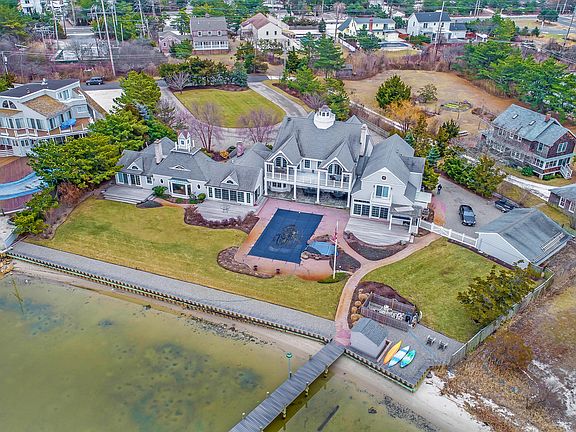 Available 8/3-8/17 ~ Magnificent luxurious 8700 sq ft private waterfront compound on nearly 2 acres with 110 feet of spectacular bayfront living on Barnegat Bay. The dock including two deep water slips offers guests perfect boating,crabbing,fishing while enjoying the most beautiful sunsets at the Jersey Shore. Walk to beach 300 yards away or relax poolside while listening to the waterfall that links the pool and Jacuzzi. Sip your cocktails on any three outdoor decks or on the covered porch overlooking the front lawn. This gracious appointed home offers many living & great room area, seating for 20 both indoors and outdoors,8 bedrooms,7.5 baths,four fireplaces,two bar areas,gourmet kitchen,two laundry areas. Close proximity to NYC and Philadelphia. Make this a vacation to remember !
