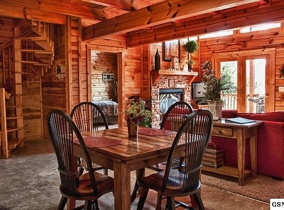 Small mountain community located in Wears Valley with close access to the Parkway and all the attractions in Gatlinburg and Pigeon Forge. Adorable custom log cabin in park like setting and is being offered fully furnished. All wood walls and ceilings! The cabin also features a well equipped open kitchen with adjacent dining room and living room with Cathedral Ceilings. Cozy stacked stone fireplace in living room opens through to the bedroom for enjoyment from both rooms. Large master bedroom has a Jacuzzi tub and large bathroom. Enjoy rolling hills and valley views from deck and living areas. Large covered deck with hot tub adds additional enjoyment. Currently in rental program performing very well.