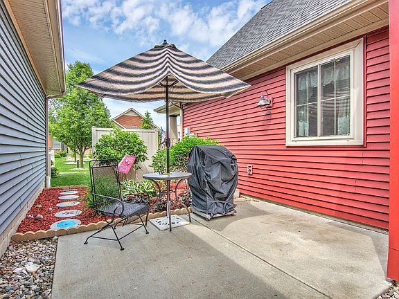 Enjoy One level, maintenance free living! Great open concept 2 bedroom 2 bath home - located in desirable Valpo location. The charming entrance with covered porch leads from the entryway to the dining room which opens to the nicely done kitchen (with tons of cabinets, breakfast island with wine rack and complete with Stainless steel appliances!) to the large great room. The master bedroom has private bath and huge walk in closet and there is another generous additional bedroom, main bath and finished laundry room. The 2 car garage has a pull down staircase with a large amount of additional storage! Outside is meticulously landscaped with private courtyard area and low HOA fee of $120.00 monthly which covers maintenance of common areas, mowing & fertilizing, grounds clean-up, sprinkler system, and snow removal.. Leaving you time to enjoy all this home has to offer.