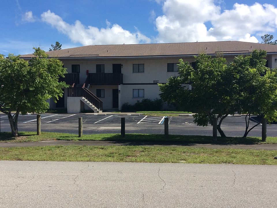 2 Bedroom, 1 Bath Condominium for sale in Cocoa, Florida by the owner. It is located on the east side of Clearlake Road across from the University of Central Florida Cocoa Campus and Eastern Florida State College. It is about 20 minute drive to Kennedy Space Center, about 15 minutes to the beach. The College Pines units were built in 1981 and there is a mix of owner-occupied and rental units. There is a strong rental demand in the area. This unit is on the first floor and is approximately 874 square feet. New wood laminate flooring was recently installed in the two bedrooms and the rest of the unit has ceramic tile throughout. The bedrooms are approximately 11 feet by 13 feet and have walk-in closets with bi-fold doors. The unit was recently painted, new venation blinds, new bathroom vanity and mirror were installed. The porch screens and screen door were recently replaced. It has a stacked washer/dryer unit in a closet. It has central heat and air conditioning, which have been under a maintenance contract with a reputable local company. The condo has been well maintained, with all appliances are in good working condition, As Is. The College Pines Condominium Association is well organized and is responsible for maintaining the exterior of the buildings, the grounds, pool, fences, roof, as well as the water, garbage pickup, and sewer service to the units. The Condominium Association fee is $750 per quarter. The owners or renters are responsible for the cost of power, cable, and internet services to their unit. $65,000 cash, or buyer gets their own financing.