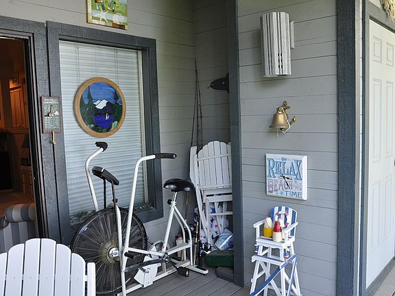 Adorable lakefront condo with very nice association beach & dock, firepit area, community pool and tennis court. This 1381 sq ft 2 bedroom, 2 bath unit has a private deck with storage and outstanding lake & mountain views. Also includes a one car garage. The back deck accesses a stairwell that takes you straight down to the beach area. Enjoy lakefront living close to downtown with no maintenance so you can spend your time playing not working! Inside enjoy the nautical touches and barn wood walls that have a beachy feel. This is a twelve unit building that does not allow short term rentals.