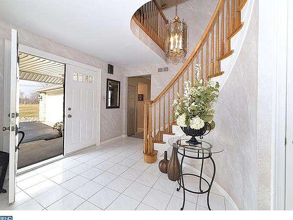 Exceptional, unique 4-bedroom house, 2-bedroom carriage house (together totaling about 3500 sq ft), garage space for 5 cars, gunite in-ground pool, lighted basketball court, golf chipping area and fields for horses on 6.52 acres are surrounded by distinctive high-end valued properties. Adjacent to almost 100 acres of Protected Lands this home is filled with generous amounts of natural sunlight and beautiful country views from all windows. A splendid updated eat-in kitchen with granite counter tops and ceramic tile floor, a family room with a lovely stone wood-burning fireplace with an expansive hearth spanning the full width of the room and a sweeping curved foyer stair are features on the first floor. From the sliding glass doors in the kitchen enter the 350+ sq ft rear screened porch and savor morning or evening coffee in this serene setting overlooking the tree-lined grounds. In addition to the master bedroom on the second floor there are 3 other ample-sized bedrooms. Cozy up to the one of the 2 wood-burning fireplaces in main house or carriage house. Relish the privacy on the deck of the carriage house. 200 of the 600 amps on the property are available for additional use. Bring horses, as many as 4, and build a barn. This special property is well located for commuting to Philadelphia, New York and places in between. Loads of venues for great shopping, restaurants, entertainment, cultural and recreational activities are all nearby.