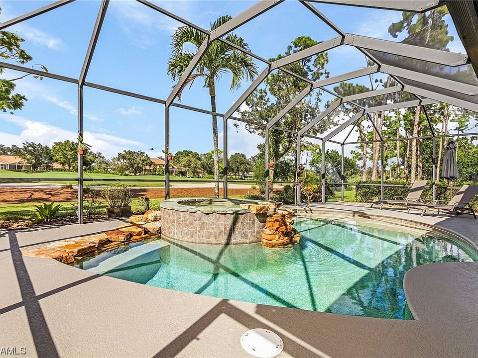 Fantastic, well maintained home with a long list of upgrades. A pleasure to show!! This property sits on an interior lot within walking distance to the clubhouse and boasts high ceilings throughout, pool & spa, expansive golf course views, 3-car garage, plantation shutters, split bedroom floor plan, beautiful landscaping and nice curb appeal. Home is great for entertaining w/open floor plan, large kitchen, spacious great room w/ sliders out to the lanai--all with golf course views. Enjoy the screened lanai area w/lovely heated salt system pool & spa with auto-fill, and removable security gate. Other updates include tile roof replaced-2021, brand new-wood look- luxury vinyl floors May 2023, water heater-'19, AC unit 2020/2021, most interior and all exterior paint '21, gutters '22, soffits '23, irrigation pump '22, pool heater '21, outdoor lights '22, lights & fans '19, range '20, dishwasher '21, microwave '23 & the lanai floor has been freshly painted. Fiddlesticks has 36 holes of championship golf, driving range, resort-style pool & spa with cabana, clubhouse with fine dining, lighted tennis courts, dog park, pickleball and bocce. Own your own golf cart. Equity fee due at closing.