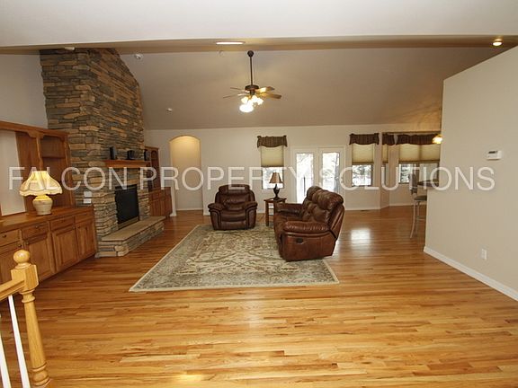$25/month discount for 2-year lease! This beautiful custom home is located in Black Forest in the Spirit Lakes community on approx. 2.64 acres! With 6 bedrooms and just over 5,100 total sqft., this is quiet living with a lot of space! This is a ranch home offering main level living to include the master bedroom and second bedroom, with four additional bedrooms and great room in the finished basement. The main level offers large living spaces with custom built-ins, a large kitchen with granite tile, formal dining room, large family room with a stone-surround gas fireplace, and beautiful hardwood floors! Walk out from the living room or master bedroom to the serene deck with views of majestic ponderosa pines. This property offers many great amenities! Full security system (monitored at tenant expense), jetted tub in master bedroom, ample storage, ceiling fans and a portable air conditioner. The solar system vastly reduces the electric bill with zero maintenance, and the property is served by well water with water conditioning system, and septic, further reducing utility costs. 3 car garage. This property does NOT have central A/C but does include a portable A/C unit. Best cell signal is Verizon...no signal with AT&T. Property also serviced by Century Link for internet and DirecTV for cable. *Pet Policy-2 pets max. with owner approval, nonrefundable pet fee of $300 per pet, and an additional $15 monthly pet accommodation fee per pet. Sorry, NO CATS. No chickens or outside animals permitted on this property. THIS IS NOT A GROW FRIENDLY PROPERTY Prospective tenants will be thoroughly screened with showings by appointment only, and we do conduct regular inspections of the property. *Absolutely NO SMOKING Utility Information: -Well (water) -Mountain View Electric (electric) and SOLAR -Glaser Gas (propane) *Tenant is required abide by the "fill in, fill out" policy. * discounted rate adjusted back to full rate for full term if tenant breaks lease for any reason. Amenities: Ceiling Fans, Dining Room, Gas Fireplace, Skylights, 3-car garage, Split-rail Fence, W/D Hookups, Security System, School District 49, Covered Trex Deck, Hardwood Flooring, Finished Basement, NO SMOKING, 2 Pets Max, Over 2 Acres, Electric Cooktop in Kitchen, Kitchen Pantry, Breakfast Bar, Solar Power System, 5pc. Master Bath, Portable A/C Unit, Granite Tile in Kitchen, Rent: $2,850, Application Fee: $55, Security Deposit: $2,850, Available 6/19/17, Cats not allowed, Small dogs allowed Contact us to schedule a showing.
