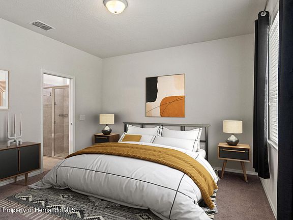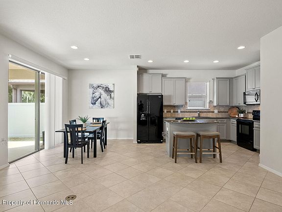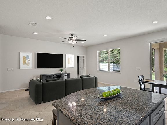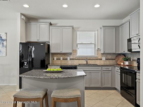 MOVE-IN READY! Welcome to this gem offering three SPACIOUS BEDROOMS, two pristine bathrooms, and a convenient two-car garage. This newly built Pulte Home (2017) features an OPEN FLOOR PLAN with modern touches from the exterior of the home's stack stone, covered front entry, window shutters and nicely landscape to the interior' s MODERN touches like the diagonally laid tile flooring with built-in receptacle in the living room, RECESSED LIGHTING, carpeted bedrooms for a comfortable feel and GRANITE countertops throughout the house. The kitchen overlooks the living room separated by a kitchen island/ BREAKFAST BAR. Step outside to your partially FENCED yard, relax or BBQ on your covered patio, and enjoy the Florida sunshine. But that's not all - you'll have access to amazing amenities, including a massive COMMUNITY POOL that's perfect for relaxation and fun. Located just moments from the Suncoast Parkway, your daily commute to Tampa and surrounding areas becomes a breeze. Say goodbye to long drives as you'll be just 35 miles away from Tampa International Airport. Don't miss this opportunity to live in a fantastic home within the thriving community of Trillium.