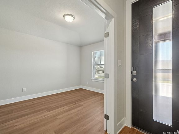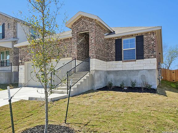 A stunning brand-new Meritage home located in Comanche Ridge, ready for immediate move-in. This home features an open floor plan that begins with a welcoming covered entry leading into a spacious foyer, which flows into an impressive living room. The chef's deluxe kitchen exemplifies superior design and functionality, featuring sleek stainless-steel appliances, granite countertops, 42-inch cabinetry, and a spacious walk-in pantry. The primary bedroom has a beautiful bay window, a 6-foot walk-in shower in the primary bath with a double vanity, and a large closet. The secondary bedrooms are a nice size, and have a teen room between. The home offers a front flex room with endless design possibilities. A beautiful, covered patio with a gas connection for a grill overlooks a nicely sized backyard. All appliances are included in this lovely home, all windows have 2" blinds, and the whole irrigation system is in the back and front yard. The home comes with a 10-year builder's warranty, providing peace of mind. Built by Meritage Homes, known for their energy-efficient features, this home will help you live a healthier and quieter lifestyle while saving thousands of dollars on the electric bill. Comanche Ridge is situated in northeast San Antonio, inside Loop 1604, near many amenities. With easy access to major highways and employers nearby, this is a beautiful community to live in.