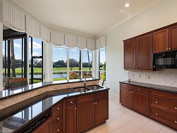 NEW ROOF!! Panoramic golf course and lake views with a southern exposure! This expansive floor plan boasts countless upgrades to include crown molding, custom lighting, built in cabinets and buffet and electric hurricane shutters. Stunning neutral tile flows throughout the main living areas, highlighted by volume ceilings and captivating outdoor views in every direction. Rich wood cabinetry and granite counter tops punctuate the spacious gourmet kitchen and breakfast nook overlooking tropical lake views through the expansive windows. Handsome built ins fill the intimate den just off the great room. The master suite is a relaxing retreat with tray ceilings and direct outdoor access overlooking the lush green golf course. The club at Mediterra offers abundant amenities including but not limited to two Tom Fazio designed golf courses, sports facilities and spectacular Beach Club on the Gulf of Mexico.