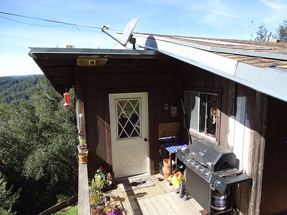 This 7 acre property has excellent privacy and nice mountain and canyon views. There are 2 bedrooms, 1.5 bathrooms, and 1278 square feet of living space. Kitchen and bedrooms are upstairs, while the downstairs is a large and open living room with access to the back deck, an excellent place for enjoying the surrounding natural setting. The detached garage provides some great storage space, but also needs quite a bit of work. Property has PG&E power and water is provided by a private well. A nice landing above the house provides some usable land, use your imagination! Great neighbors on a private, gated road.