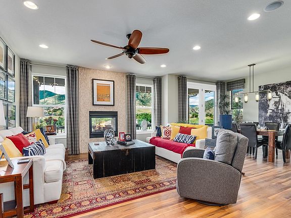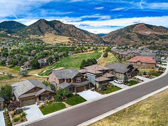 This 2014 Ranch Style Former Model has Stunning Mountain Views in Desirable Willow Springs backing to Red Rocks Golf Course. Gorgeous Walnut hardwood floors on main level. Beautiful upgrades throughout! Huge Gourmet Kitchen with upgraded appliances, center island, quartz countertops and designer tile backsplash. 2nd bedroom with full bathroom on the main level. Spacious master with views and luxurious master bathroom. Walk-out basement with great room, wet bar and wine room. Two guest bedrooms and 3/4 bathroom. Covered deck with gas fireplace - great for entertaining and enjoying the views. Fenced yard with paver patio backs to 8th green. Ride your golf cart to the course! Automated home electronics & security throughout.