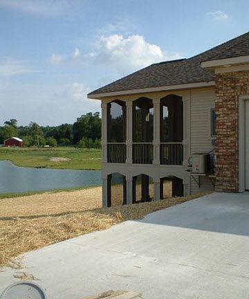 New construction! Brand new floor plan. Master on the main w/ a den. 10' ceiling throughout 1st floor, walk-out lower level, ceramics & hardwoods throughout. Lots of glass. Overlooking lake. Large estate lot. Quality throughout. Spacious kitchen, 2 screened front porches.