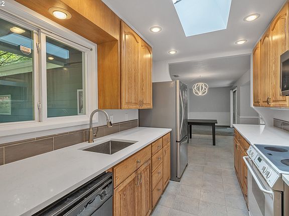 Mid-Century home at quiet dead-end street! Just across from Powell Butte with wonderful nature trails, both wooded and territorial views. Inside, discover a tasteful mix of updates and original character, like quartz countertops and hardwoods floors. Fresh paint inside/out. Spacious living and family rooms. Wood burning FP. Daylight basement extras: bonus room, 3 storage areas, ideal for ADU. Covered patio, fenced yard, garden, oversized garage. Do not wait!