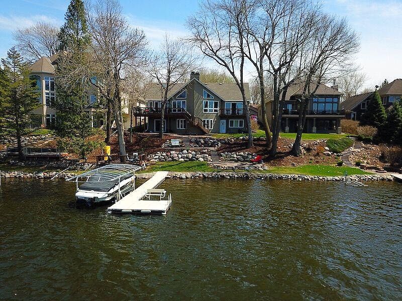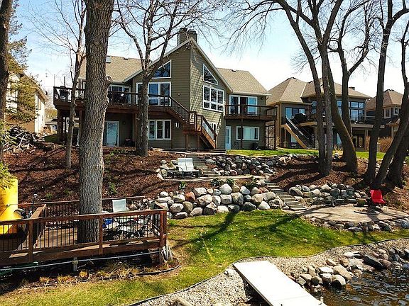 Enjoy sunsets from this walkout rambler located on Lower Prior Lake lakefront! Property offers multiple decks & patios for relaxing or entertaining! 4 Bedroom / 4 Bath home features open floor plan with floor to ceiling stone fireplace in vaulted great room. Spacious master suite w/private balcony and shower. Other features include hardwood flooring, enameled cabinetry, stone countertops, large storage room, LL bar & walk-out lower level. Home is situated on a quiet, dead-end street just steps away from Lakefront Park & downtown Prior Lake.