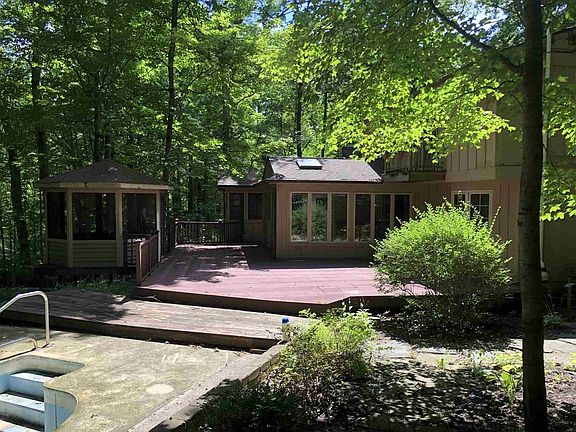 TRUSTEE SALE. MUST SELL! This home sits in a cul-de-sac on a beautifully wooded 1+ acre lot. The home features a large formal living room just off the entryway as well as a large sunken family room situated just off the kitchen and features a wood burning fireplace as well as a conveniently hidden workspace. The kitchen has been completely remodeled and features Silestone countertops, custom Grabil cherry cabnitry, a prep sink, double oven with warming drawer, pantry with sliding shelves, and stainless appliances. Beyond the breakfast bar is a morning room with a cathedral ceiling and skylights that allow for an abundance of ambient light. The upper level has 4 bedrooms and 3 full baths. The master bath features a large tiled shower and marble counter. There is also plenty of room in the lower level for entertaining and features a rock faced gas fireplace, office/den, and a large laundry area.