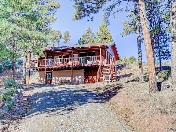 Welcome to 15529 Cochise Trail! This adorable home is situated on over 3.7 acres horse property with a domestic well. Located minutes from Pine Junction and Hwy 285! From there you have an easy commute to Conifer or Denver. Grab your hiking boots, fishing rod, mountain bike and play in the great outdoors from Deckers to Staunton State Park. Main level features 2 bedrooms, 1 full bathroom, vaulted ceiling in living kitchen area with a woodburning fireplace for the cozy winter nights. The lower level features a family room, 1 bedroom with walk in closet, utility/laundry room. Enjoy the covered large front deck and entertain your guests. A lower-level bathroom maybe added to the utility room. There is a large RV parking pad with electric and water hook up provided. New 2023 composite shingle roof with transferable warranty. If allowed by county this may make a great Airbnb.