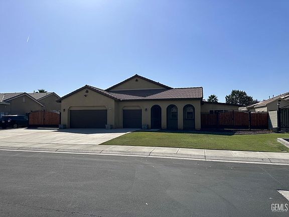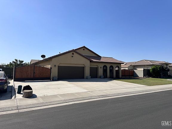 Private Gated Ranch Estate in Northwest Bakersfield. Nestled in the private gated community of northwest Bakersfield, this upgraded estate offers over 900 sq. ft. of open entertainment space. The home features iron gates, oversized ceiling fans, automatic sliding door shades, custom flooring, and stylish window coverings. The spacious layout includes 3 bedrooms, an office, and 3.5 bathrooms, plus a gorgeous kitchen overlooking the great room with long granite countertops and abundant natural light. The massive suite is a true retreat, with two walk-in closets and a luxurious bathroom featuring a soaking tub and separate shower. Additional upgrades include RV parking, an extended driveway. The spacious 3-car garage is waiting for your return. This unique property combines luxury, comfort, spaciousness, and privacy in an ideal location.