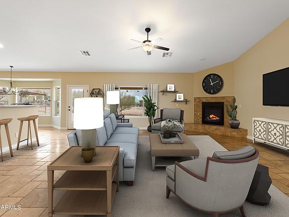 Rare opportunity to rent a horse property in the Rio Verde Foothills! Ride off the property into Tonto Natl Forest. Your horses will enjoy the large fully fenced turn-out with a good-size mare motel, hitching post and space for hay storage. The home is on a well-working SHARED WELL!! Oversized 44'X24' deep FOUR CAR GARAGE with 8' tall and 16' wide doors. 5 BR/3 full bath or use one of the bedrooms as an office. This home has an open great room plan with beautiful travertine tile. No carpet anywhere! The large kitchen features Alder cabinetry, granite counter tops, stainless steel appliances & walk in pantry. The split floor plan allows privacy for all bedrooms. Only minutes from Tonto Natl Forest. Enjoy cooler temps, starry skies, riding - hiking - four-wheel trails close-by. No Cats!