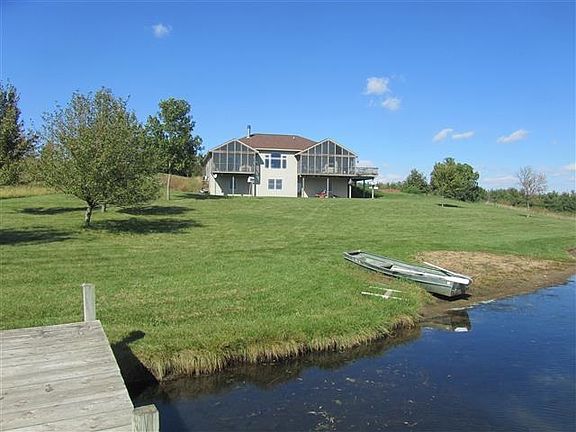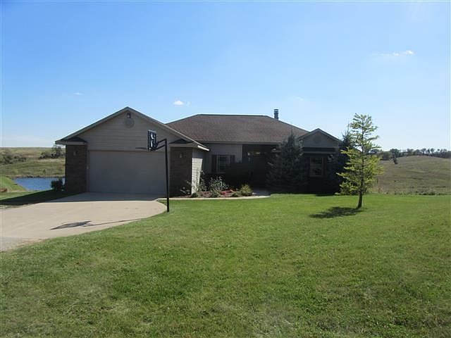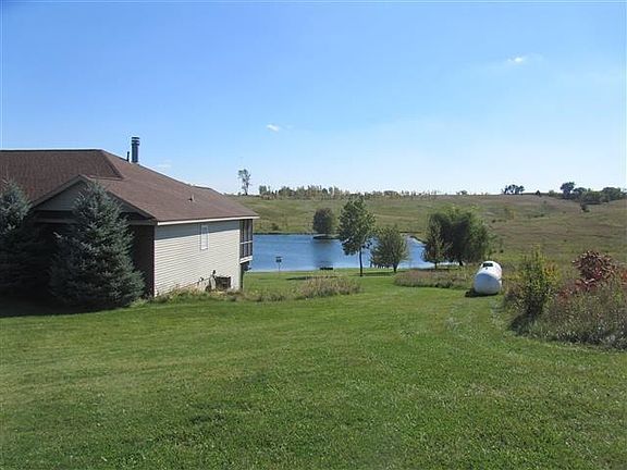 Ranch home on 10 acres in the middle of this 80 acres of CRP ground. Includes 3 acre pond, prairie and trees. Built in 1999, this 4 bedroom walkout ranch has an open kitchen w island, built in breakfast booth, pantry and oak floors. Brick wood burning fireplace in the great/living room. 24' x 10' screen porch, deck and patio. 3 bedrooms w walk in closets. Lower level has 9' ceilings. Oversized 2 car garage and 40' x 48' heated shop. See aerial video from drone.